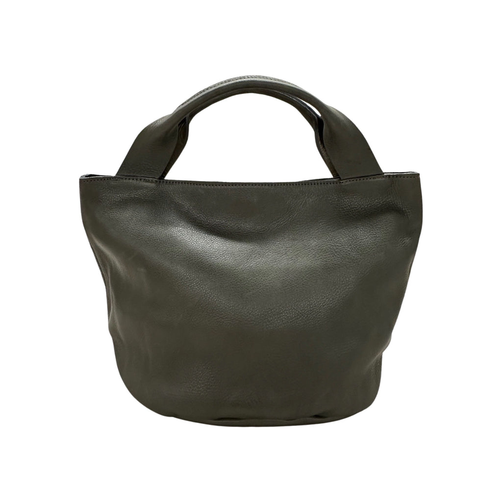 Soft, thick Argentinian leather bag with short strap that sits under the arm. Perfect size when you just need a small tote. This tote style leather bag is available in 3 colors.
